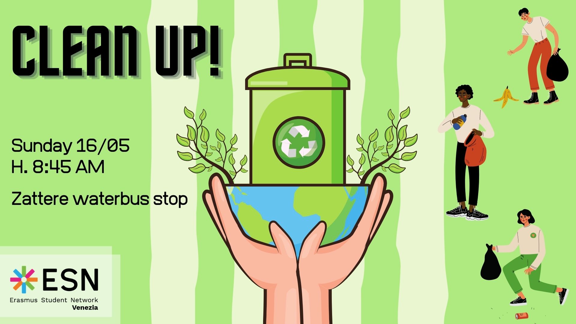 Allora unisciti a noi domenica 16 Maggio! Insieme a Venice Calls, un’organizzazione locale, parteciperemo ad un clean up a Pellestrina, un’isola al largo di Venezia. Sarà un’ottima occasione per contribuire alla protezione dell’ambiente e per conoscere gente del posto.
